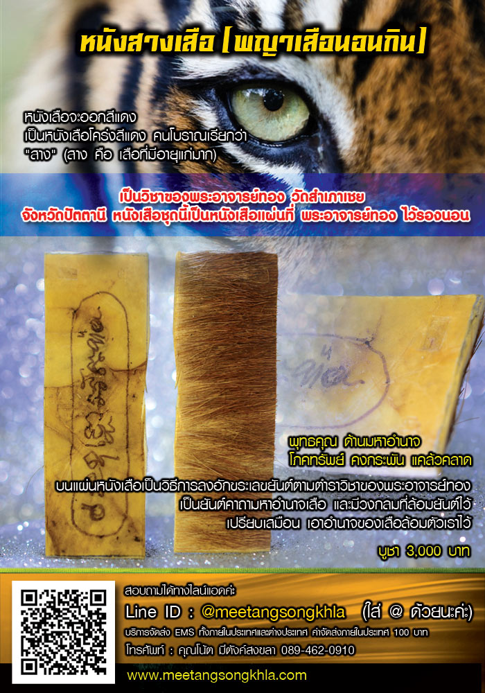 -เป็นหนังพญาเสือนอนกิน ที่ถูกต้องตามตำรา คือ เป็นเสือที่ตายตามธรรมชาติ